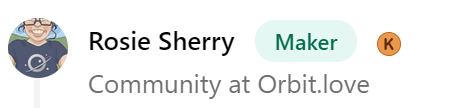 "Those who know me understand that I adore all things community building. I really believe in the future of community that Orbit is building. 💜"